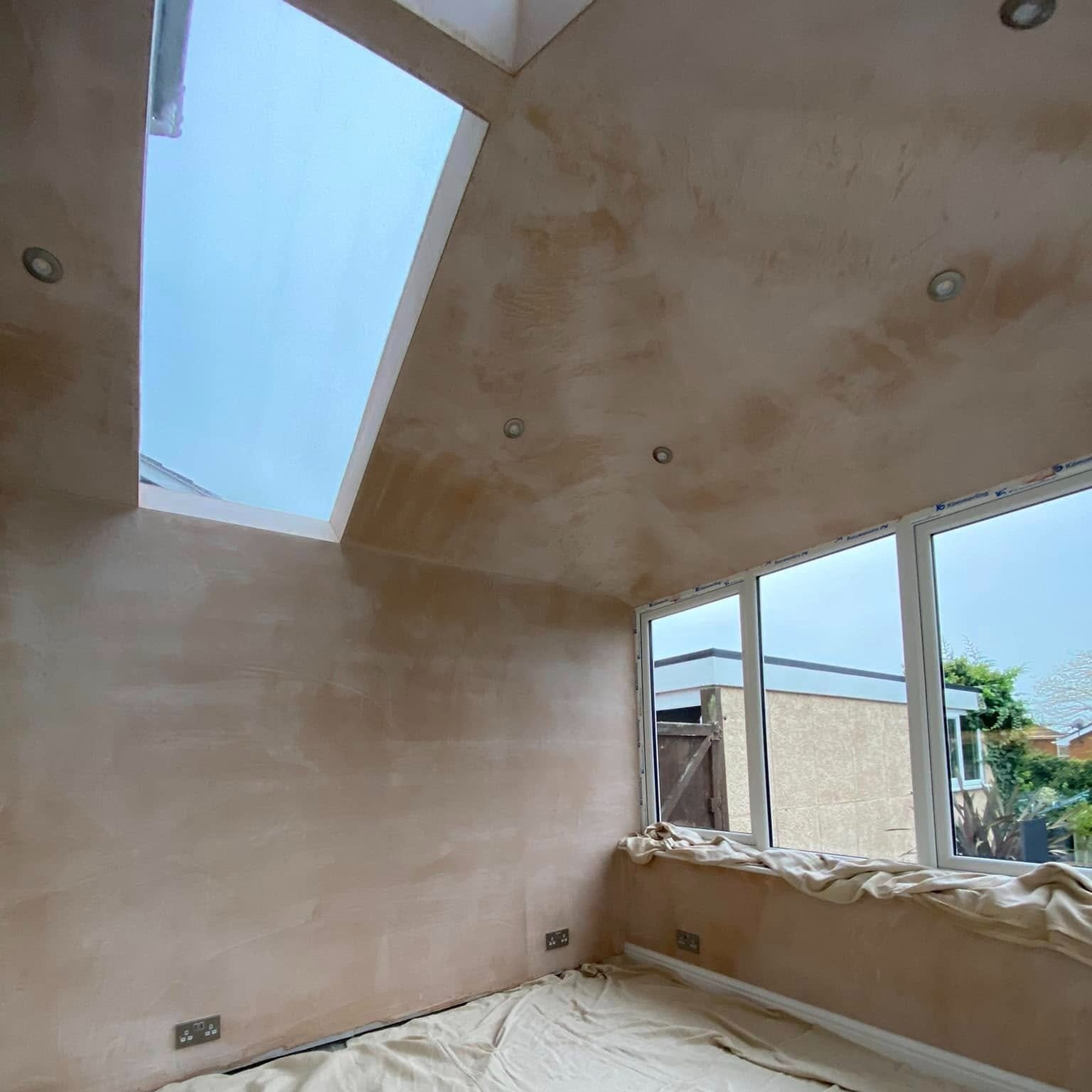 Painting a new conservatory following its construction and plastering, colour was Dulux Whitey White.